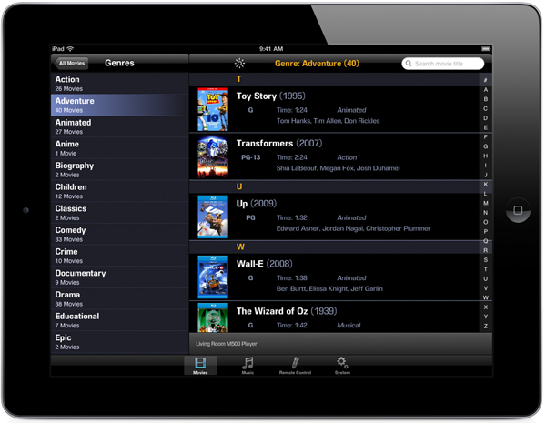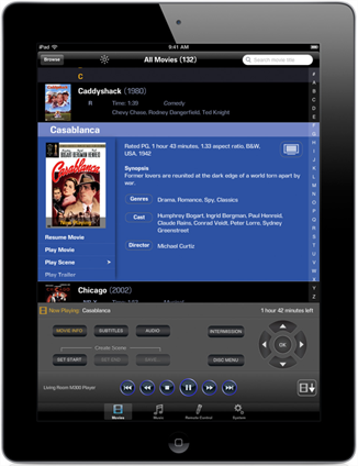 The Kaleidescape App for iPad provides an immersive experience for browsing and searching your collection of movies and music. The app extends the Kaleidescape experience to the iPad, displaying your movie collection with vivid high-resolution cover art, synopses, and other details. It even puts the most memorable moments in movies right at your fingertips - just select a scene or song marked by Kaleidescape, and it plays instantly on your TV.