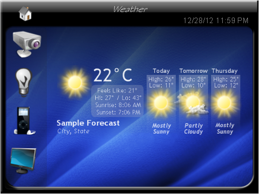 Weather for any location in the world can be shown on the Vantage touchscreen in either a current conditions or an extended five-day forecast.