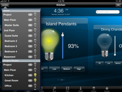 The Vantage iPhone and iPad Apps offer the most personalised access to your Vantage system from anywhere you are. The app turns your iPhone, iPod Touch or iPad into a mobile touchscreen complete with the scenes and settings you'd find on any in-wall touchscreen or keypad in your home. Simply touch the screen to dim the lights, scroll through your music library or view camera feeds.